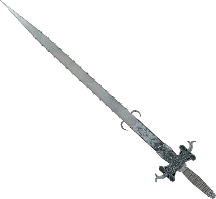 Die Klinge hat ein einzigartiges Aussehen: Es hat an den Rändern kleine Zacken, genau wie Dornen, während der Schaft und auch die Schneide ungewöhnlich verziert wurden. Die Dornenklinge ist im Besitz von Andel Indarys.