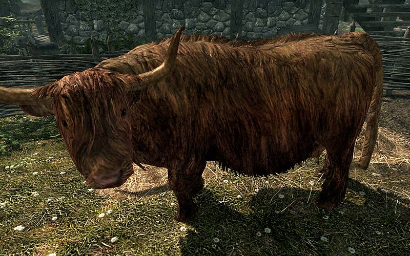 Hin und wieder kann man auch einen Bauern auf den Straßen von Himmelsrand treffen, der eine mit Symbolen bemalte Kuh zu einem Riesenlager bringen will. Dort will er sie den Riesen als Opfer überbringen, damit diese seinen Hof in Ruhe lassen. Folgt man dem Bauer und der Kuh, gehen diese irgendwann vom Weg ab und bleiben in der Wildnis stehen. Eine weitere Interaktion ist nicht möglich. Ganz selten kann man auch erleben, dass der Bauer tatsächlich in einem Riesenlager ankommt, wo er dann jedoch von den Riesen erschlagen wird.