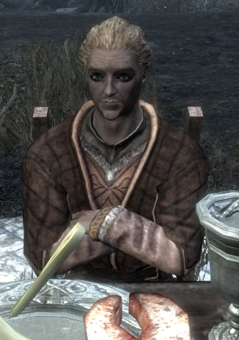 Man kann Pelagius Septim in Skyrim nur ein einziges Mal finden und das nur in der Quest "Der Geist des Wahnsinns", wo er zusammen mit dem daedrischen Fürsten Sheogorath speist.