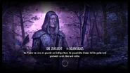 "Seid auf der Hut, Entseelte. Eure gesamte Existenzebene ist in Gefahr. Die Bedrohung durch Molag Bal legt sich über ganz Tamriel, und Chaos breitet sich in ihrem Schatten aus. Gefahren in vielerlei Gestalt machen das Land unsicher. Lasst Euch bloß nicht auf dem falschen Fuß erwischen."