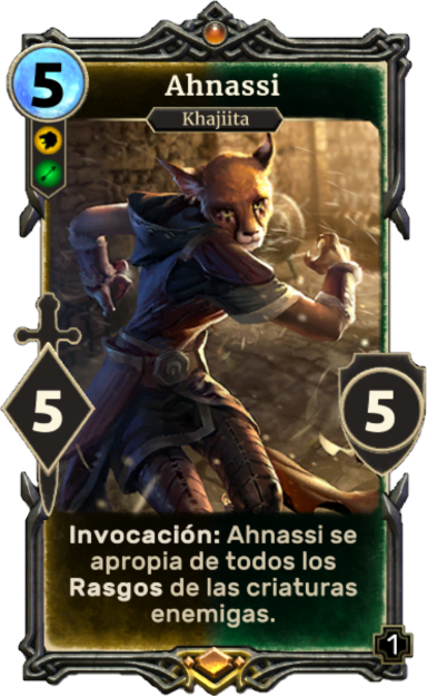 Ahnassi es una carta legendaria y única de criatura multiatributo de atributos Voluntad y Agilidad que aparece en The Elder Scrolls: Legends.