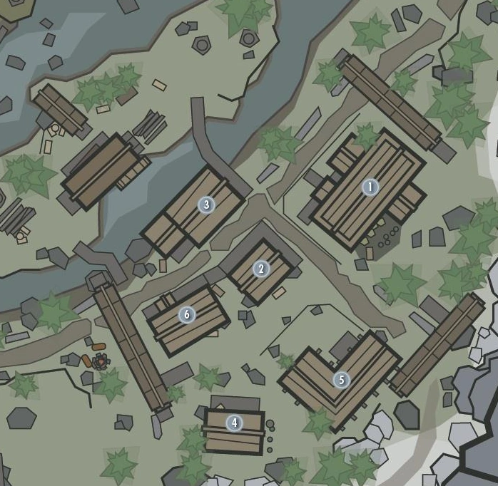 - 5. Casa de Hod y Gerdur. Es la casa del dueño del aserradero. Gerdur es la hermana de Ralof.