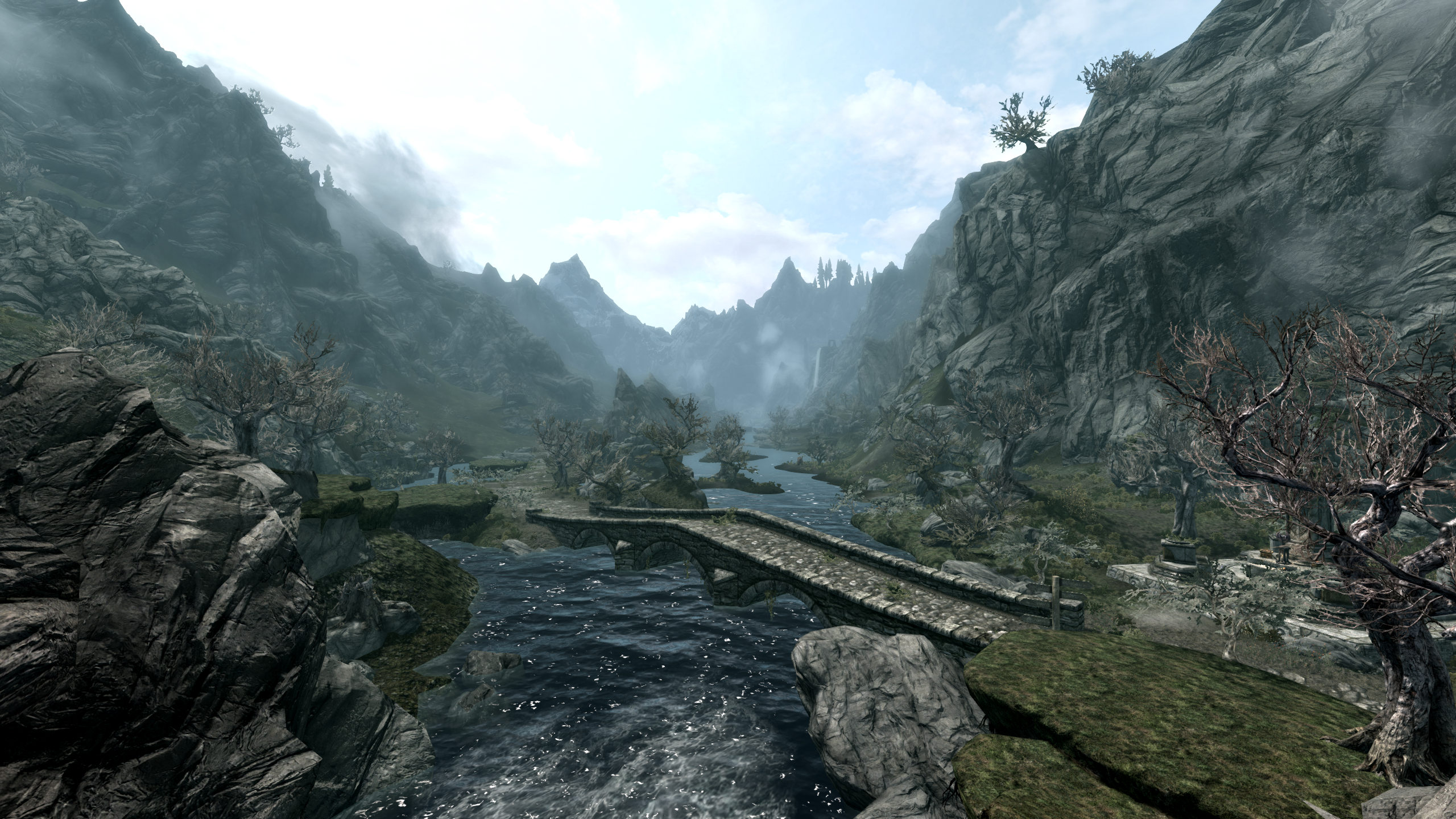 Estas son las tierras escarpadas de Skyrim, un entorno duro poblado por árboles de enebro y carente de planicies. Hay muchas minas de diversos minerales.