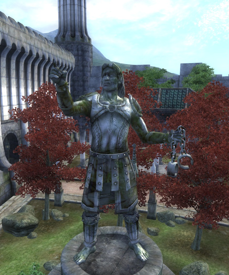 Estatua de Morihaus en el Distrito de la Arena de la Ciudad Imperial, en The Elder Scrolls IV: Oblivion.