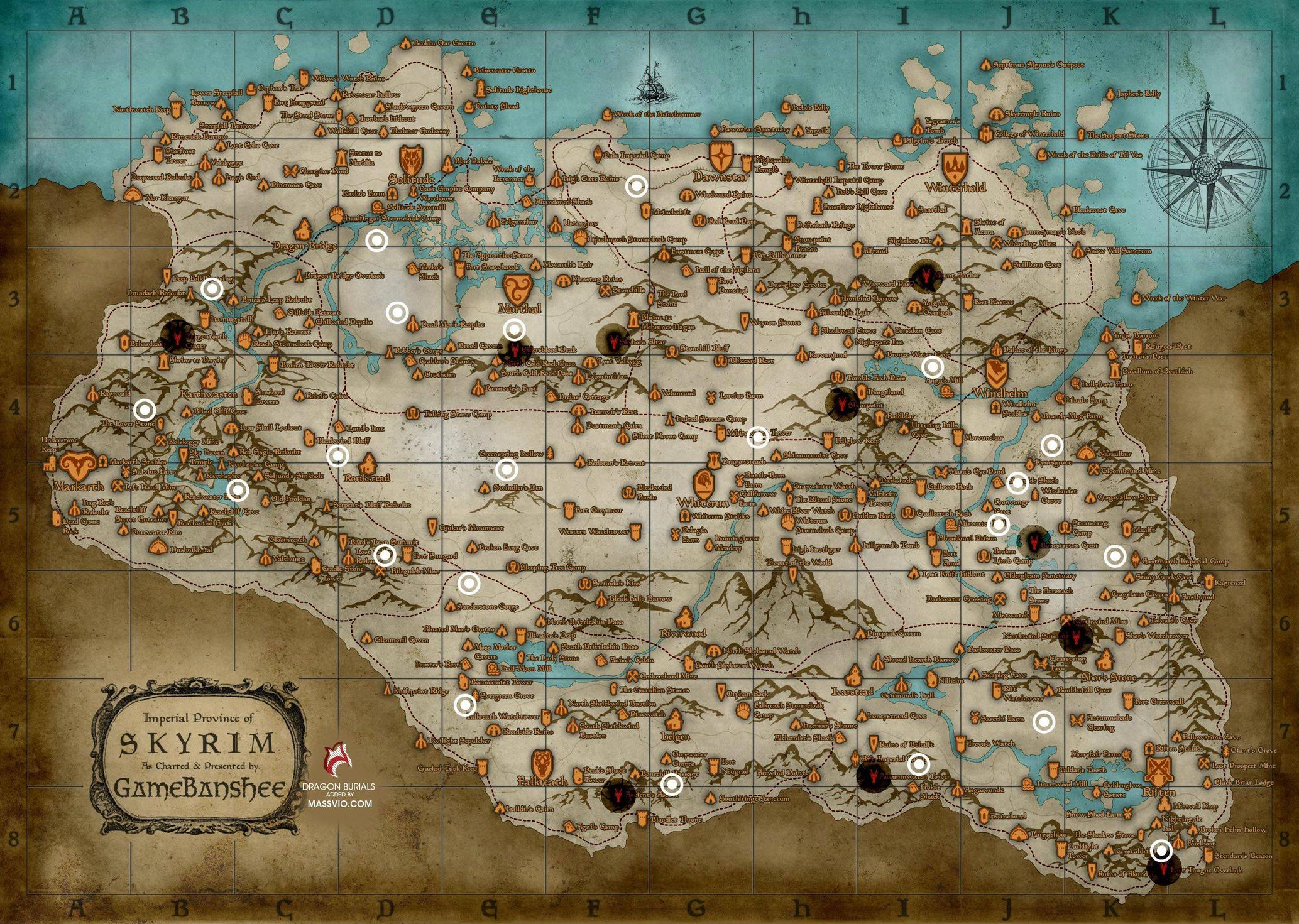 Esparcidos por todos los rincones de Skyrim, son extraños montículos circulares, rodeados de un puñado de piedras verticales. Estos son en realidad antiguos túmulos funerarios de los dragones; el lugar de descanso final de estas criaturas cuando fueron asesinados hace siglos.