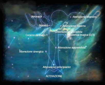 Alterazione principiante: puoi lanciare incantesimi di alterazione di livello principiante con la metà della Magicka Alterazione sinergica: Il lancio di un incantesimo di Alterazione ne potenzia notevolmente gli effetti richiede lv 20 Alterazione apprendista: Puoi lanciare incantesimi di alterazione di livello apprendista c