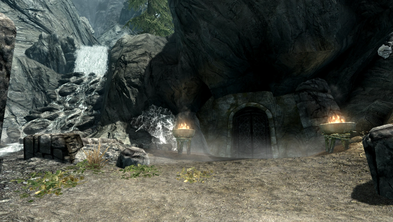 La radura di fronte all'entrata, una grande porta di ferro, è stranamente priva di vegetazione da raccogliete. Vi sono i resti di diversi pilastri di pietra, che indicano come l'ingresso fosse anticamente assai più maestoso. A destra dell'entrata si può scorgere un alveare. Una cascata sulla sinistra forma un piccolo ruscello, che attraversa il sentiero prima di gettarsi, a destra, in un laghetto.