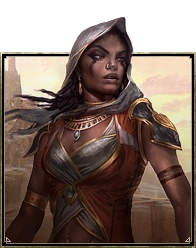 The Redguards of Hammerfell are talented and athletic warriors, born to battle. A desert people, their ancestors migrated to Tamriel from the lost continent of Yokuda. Their culture is based on preserving ancient traditions and defying their harsh environment. They prize honor and dignity above all else, combining a deep reverence for the divine with a suspicion of all things magical. Their capital is the merchant port of Sentinel, but their roots are deep in the sands of the Alik’r Desert. In their youth, Redguards endure a rite of passage in the desolate wastes of Alik’r as a test of endurance and discipline. Only the strongest survive.[3]