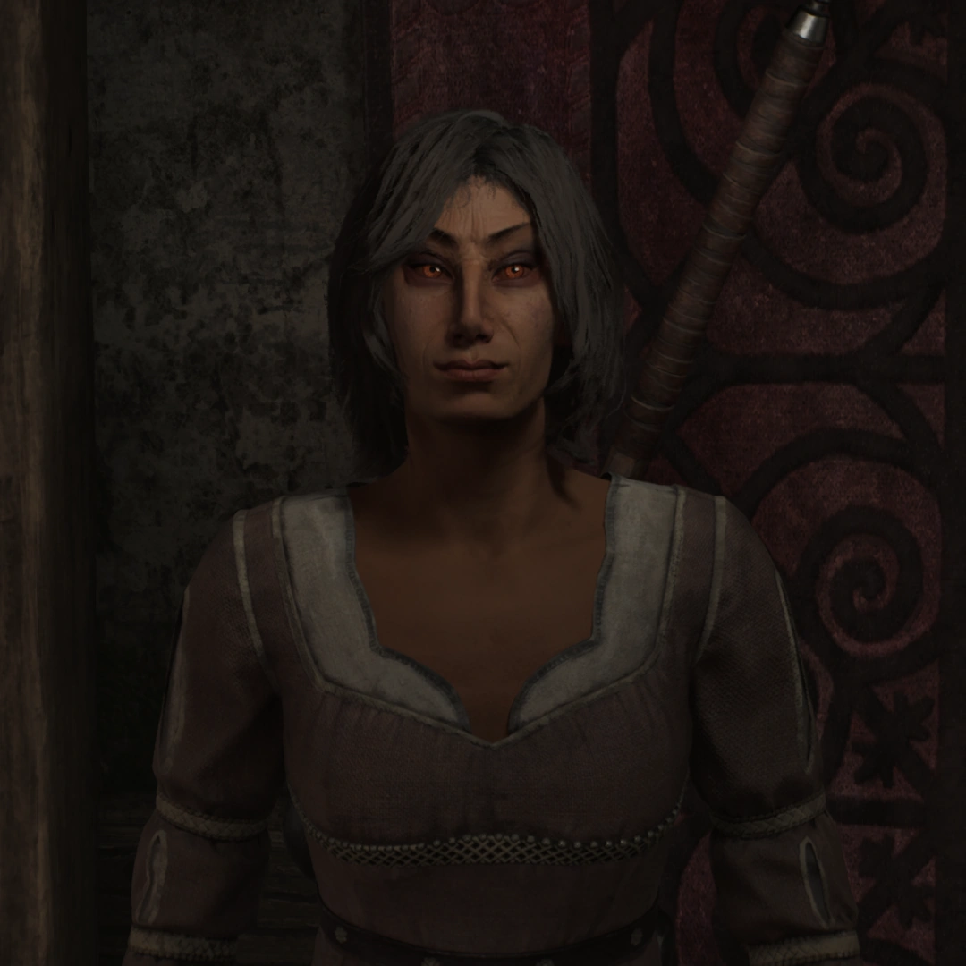Андрагил носит коричневую одежду, коричневую рубашку и стёганые туфли. Вооружена уровневым молотом. В её карманах можно найти небольшое количество монет и ключ от дома.