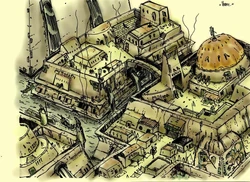 Отдельно стоит рассмотреть храм в Морнхолде, являющийся уникальным образцом архитектуры. Три высоких шпиля, между которыми, словно растянутый шатёр, расположилось основное здание, разделённое на три сегмента под шпилями, коридор-кольцо и центральное святилище под главным куполом — обитель Альмалексии[22][25].
