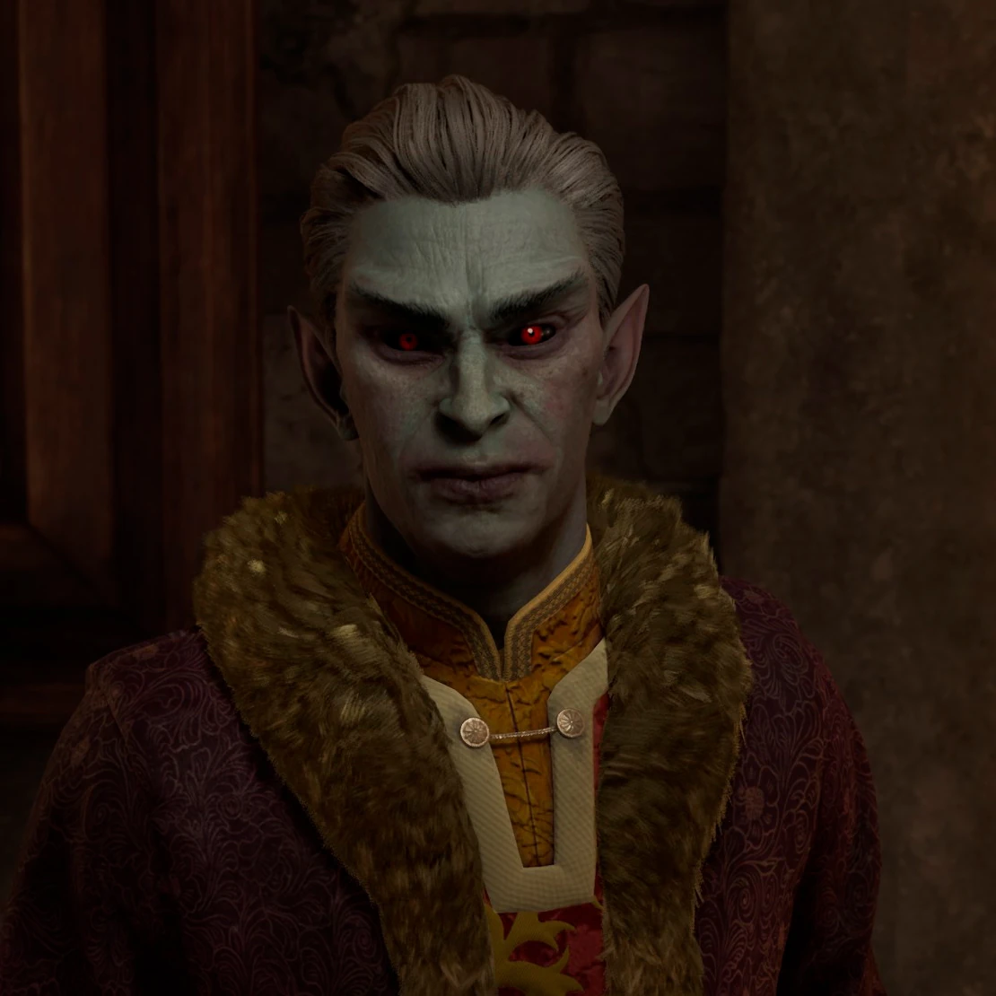 Носит одежду высокого класса, соответствующую его статусу: чёрно-красный наряд, шитые золотом туфли и некоторые ювелирные украшения. Вооружён стальным коротким мечом, при себе имеет ключ от замка и внутренних помещений, а также приличную сумму золота.