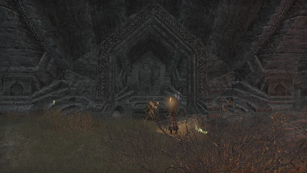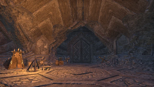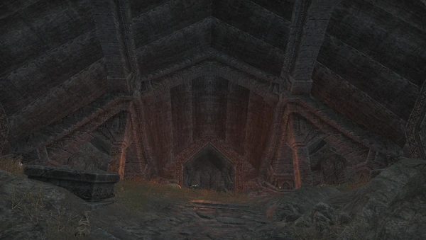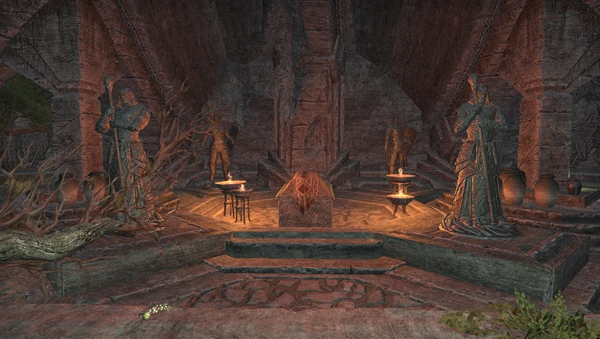 Шарела, находящаяся у входа в склеп, придерживается альтернативного мнения. Согласно её соображениям, внутри гробницы нашёл свой последний приют именно Гайден Шинджи, а не Балот Кровоклык. Редгардка укажет, что на двери склепа изображён Гайден Шинджи и его последняя дуэль и задастся вопросом, почему орки почтили память убийцы своего героя на дверях гробницы последнего. Шарела выкажет опасения из-за прибытия посланников короля Орсиниума, которые могут «переусердствовать» из-за находки, поскольку именно на Гайдене Шинджи лежит ответственность за разрушение древнего Орсиниума по мнению ныне живущих орков. Однако точного ответа на вопрос, кто действительно покоится в гробнице, нет, пока её не открыли. А сделать это можно с помощью двух погребальных урн, ниши под которые есть по обе стороны двери. Шарела расскажет, что неподалёку в пещере есть проход в катакомбы с каменной кладкой, идентичной той, что представлена у входа в гробницу. Шарела предупредит героя о том, что в катакомбах обосновались Зиморождённые.
