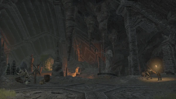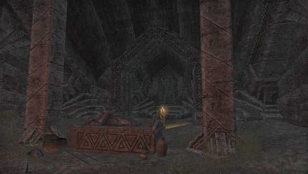 В нём Бездушный окажется в длинном доме Балота Кровоклыка в тот момент, когда он принимает у себя посланницу лорда Тристана — командира Релиану. После краткого разговора с ней герой в теле Аракаула, кому принадлежат эти воспоминания, будет подозван Балотом. Герой расскажет протагонисту о скором выдвижении в поход и о своём отношении к политике короля Голкарра — правителя Орсиниума на тот момент. В частности, он не хотел ввязываться в мясорубку под стенами Орсиниума, считая, что король мечтает вовсе не об объединение орков, а о своей власти над ними. Также Балот отметит письмо короля Джойла из Даггерфолла, в котором тот поведал о гибели его брата Рокауга и прямым текстом потребовал от орка перейти на службу к бретонам, в противном случае пообещав Балоту повторение участи его родича. Это поспособствовало решению Кровоклыка выдвинуться в поход к стенам Орсиниума. После возвращения в реальность Бездушный сможет забрать урну с пьедестала. В северо-восточном углу главного зала катакомб находится проход в правое крыло. Оно представляет собой систему пещер, через которые свой путь проложила подземная река. Здесь обитает большое количество гарпий, а в ответвлении от южного зала живёт тролль по имени Мучитель. У входа в его логово находится Мстительное око. Из пещер можно попасть в два изолированных от основной части комплекса зала, охраняемых предельцами и ворожеями. В северной комнате, где за небольшим водопадом стоит урна Тамала, находится такой же ритуальный бассейн, испив воды из которого герой переместится в очередное воспоминание прошлого.