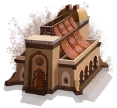 Дворцы довольно большие, просторные. Над тронным залом расположен большой позолоченный купол, часто к дворцам пристраивают высокие башни. На вершине башен находится купол, под которым открытая наблюдательная площадка. Дверные проёмы оформляются в виде арок. Внутреннее убранство домов довольно богатое: деревянная мебель, подушки для сидения, гардины. В богатых домах по периферии крупных комнат создаются колоннады, посредством которых да ещё штор из ткани комната разделяется на секции.