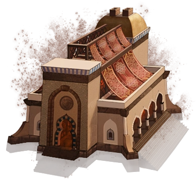 Хозяйственные постройки обычно просторные, с плоской крышей. Перед входом на склад часто укрепляют навес из ткани. Кузница прямоугольная, открытая. Эта открытость достигается посредством строительства колоннад вместо сплошных стен. Дорожные святилища представляют собой беседки с золотым куполом. Архитектура зданий южного Хаммерфелла совсем немного отличается от таковой на севере. В садах, разбиваемых чаще всего вокруг дворцов, редгарды высаживают различные пустынные цветы и пальмы, возводят беседки и фонтаны.