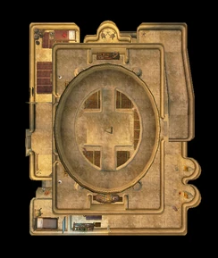 Храм большой, трёхэтажный. Полы тут застелены коврами, а на стенах висят гобелены. Сразу около входа расположена большая приёмная, слева за дверным проёмом имеется две смежных комнаты, также разделённых лишь выступом стены. В каждой комнате поставлена кровать, тумбочка и сундук. В дальнем левом углу есть урны, корзина и мешки с припасами. Также в каждой комнате можно заметить книгу. В следующей комнате находится большая яма с пеплом, позади неё поставлено два алтаря, около каждого имеется небольшая скамейка. Справа есть небольшая комната, в которой с комфортом расположилась торговка. Справа в комнате поставлен шкаф и письменный стол с креслом, слева стоит шкаф, на полках которого имеется немного посуды, стоят горшки с местными растениями, и лежит щит Света. На возвышении за ширмой имеется кровать и маленький столик, на котором лежит книга.