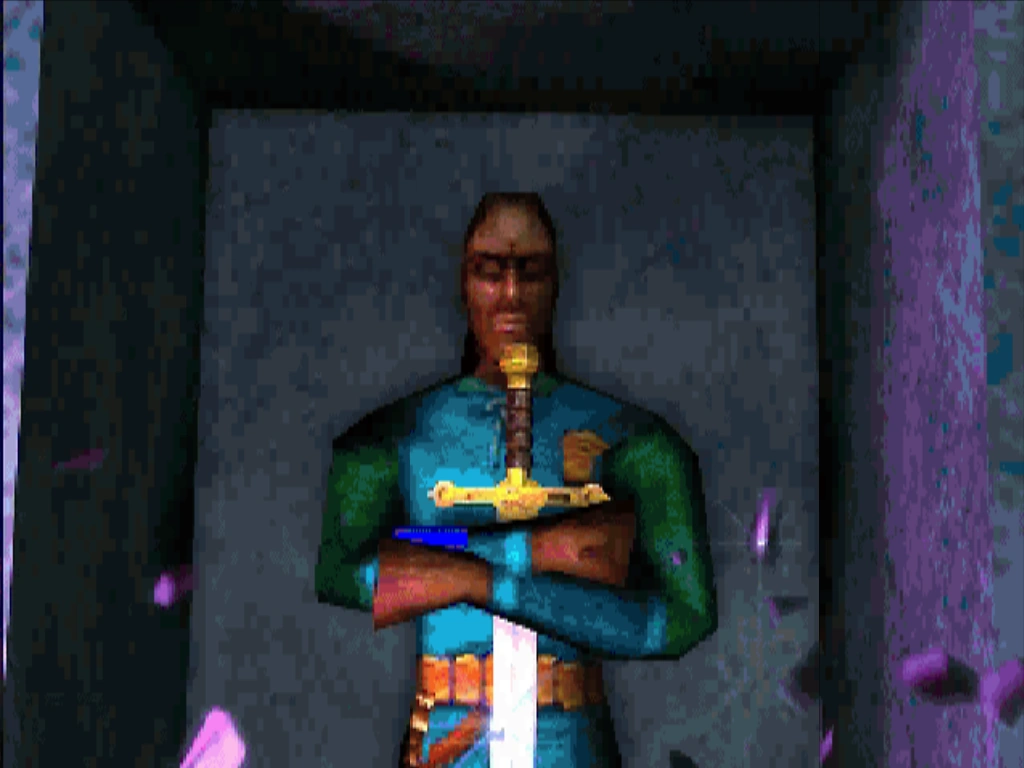 A'Tor's body, however, was saved by his battlemages and the priests of Arkay, where it was being kept in the Temple of Arkay. Saban then took the soul gem and used a spell to attempt to resurrect Prince A'Tor's body with it. The spell worked, but the prince instead chose to have his soul enchant his sword. This sword became known as the Soul Sword and contained Prince A'Tor's mind and spirit. The sword could think and move on its own and guided Cyrus to his former palace. Cyrus used the sword in combat against the guards, Dram, and Amiel Richton. After defeated Richton, Cyrus was tricked and forced to drop the soul sword. The soul sword then flew up and stabbed Richton and Dram.[3]