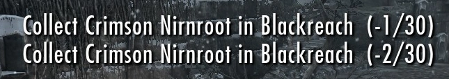 360 PS3 When crimson nirnroots are stored in containers or dropped, the game may subtract more or less from the quest counter than were actually lost. Picking them up individually fixes this issue.