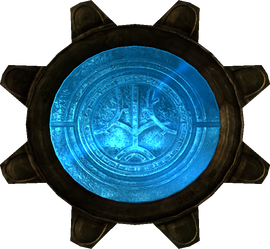 Aetherium is a rare, blue luminescent crystal found in Dwemer city ruins. It was originally discovered by the Dwemer miners in Blackreach. It possesses magical qualities, though it is almost impossible to make anything out of, without the proper tools.