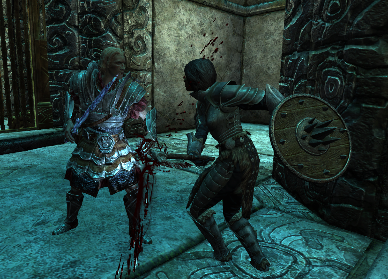 Continue down the hallway to a set of stairs leading up to an area covered in oil, along with a Dwarven Sphere and a Dwarven Spider. Before climbing up, there is a gap between metal bars underneath the stairs leading to the body of Endrast with a Falmer arrow in his shoulder. An adept-locked chest can be found next to him. Past the stairs is a ramp with several pressure plates to the sides. Triggering them will activate the spinning blades that will go down along the in the middle. The path will be blocked, but can be opened by one of the levers. Continuing downwards, you will come across a ledge that you must jump off of. But before doing so, there is a locked door to a room with various loot, including a skill book. Once you jumped down, you will find the body of Yag gra-Gortwog, riddled with arrows. That path upwards leads to a dead end with a chest and a Dwarven Spider hiding in a pipe, while the path down leads to several Falmer guarding the path. Past them will lead into a series of rooms filled with Falmer. Various types of loot can be found like ores, ingredients and everything found in chests. A few things of interest are an Alchemy Lab in the first room and a workbench along with an anvil in the other room. In the final room lies the Falmer boss along with 2 more. The room holds an assortment of items scavenged from the expedition members, like Sulla Trebatius's knapsack. Valie's body can be found on a table with shackles. Next to her lies a lift that leads back to the Alftand Glacial Ruins. Further down, past a dead Falmer riddled with Iron Arrows, lies the door to Alftand Cathedral. Be careful of the claw trap before the door.
