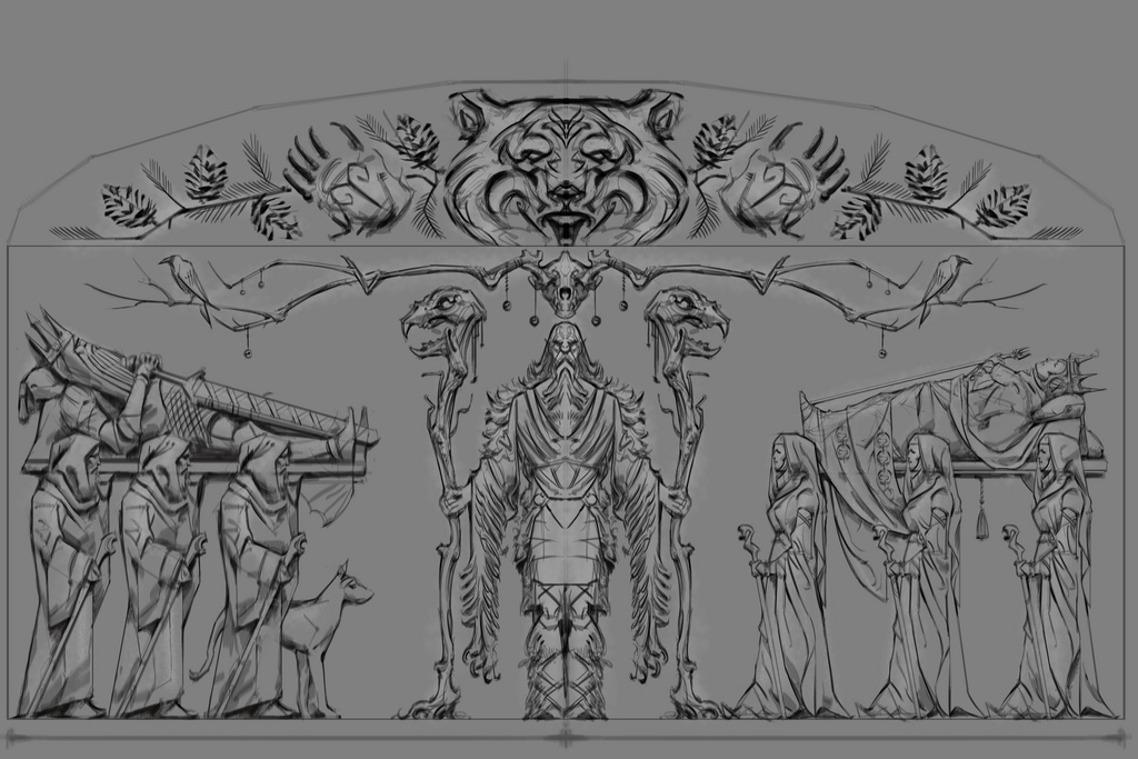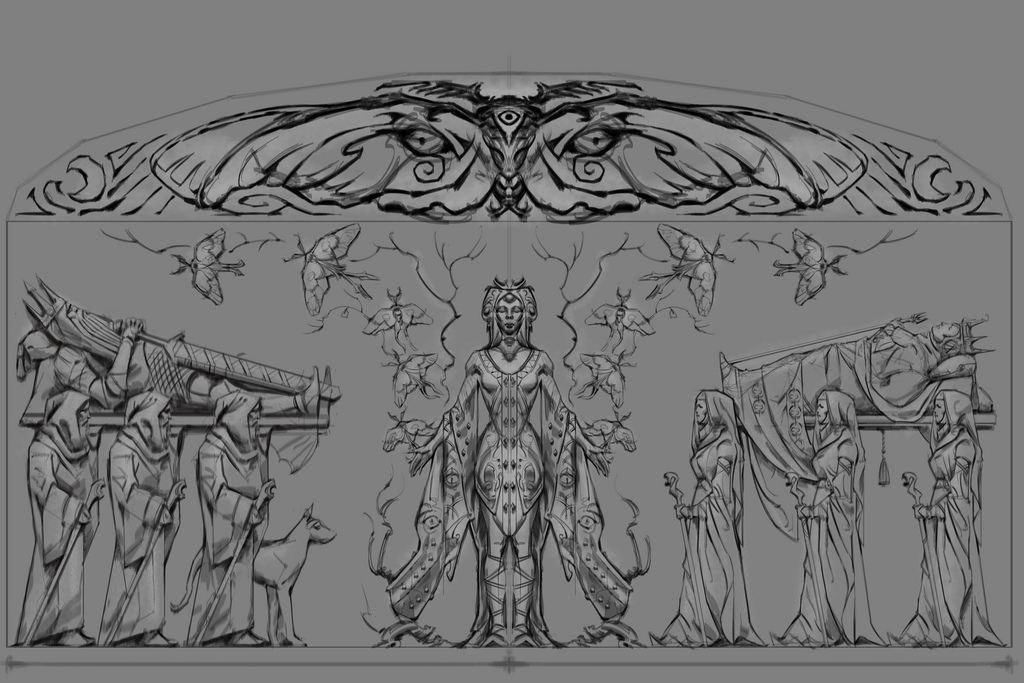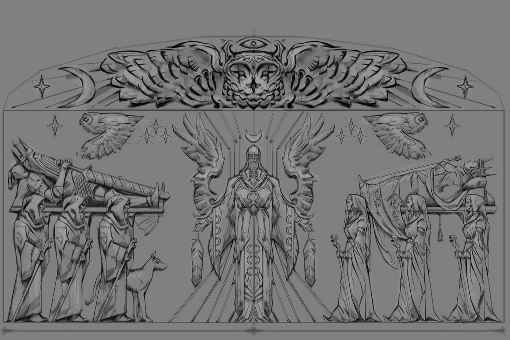 Part of the cult's beliefs was a faith focused on the worship of animal gods. The deified animals were the hawk, wolf, snake, moth, owl, whale, bear, fox, and the dragon.[1] Low reliefs found in ancient Nordic ruins have led scholars to believe that these deified animals were actually totemic representations of several Et'Ada, some of which are present in the pantheon of the Eight Divines. Of these reliefs; six are depicted as male and three as female.