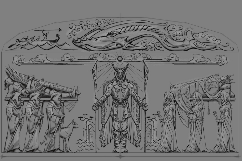 The Dragon was the chief deity in the ancient Nordic pantheon as is widely accepted as being a representation of Alduin, the god of time, as well as the "World Eater."[UL 1] Low reliefs in ancient Nordic tombs don't depict them directly, rather their servants; the Dragon Priests are shown.