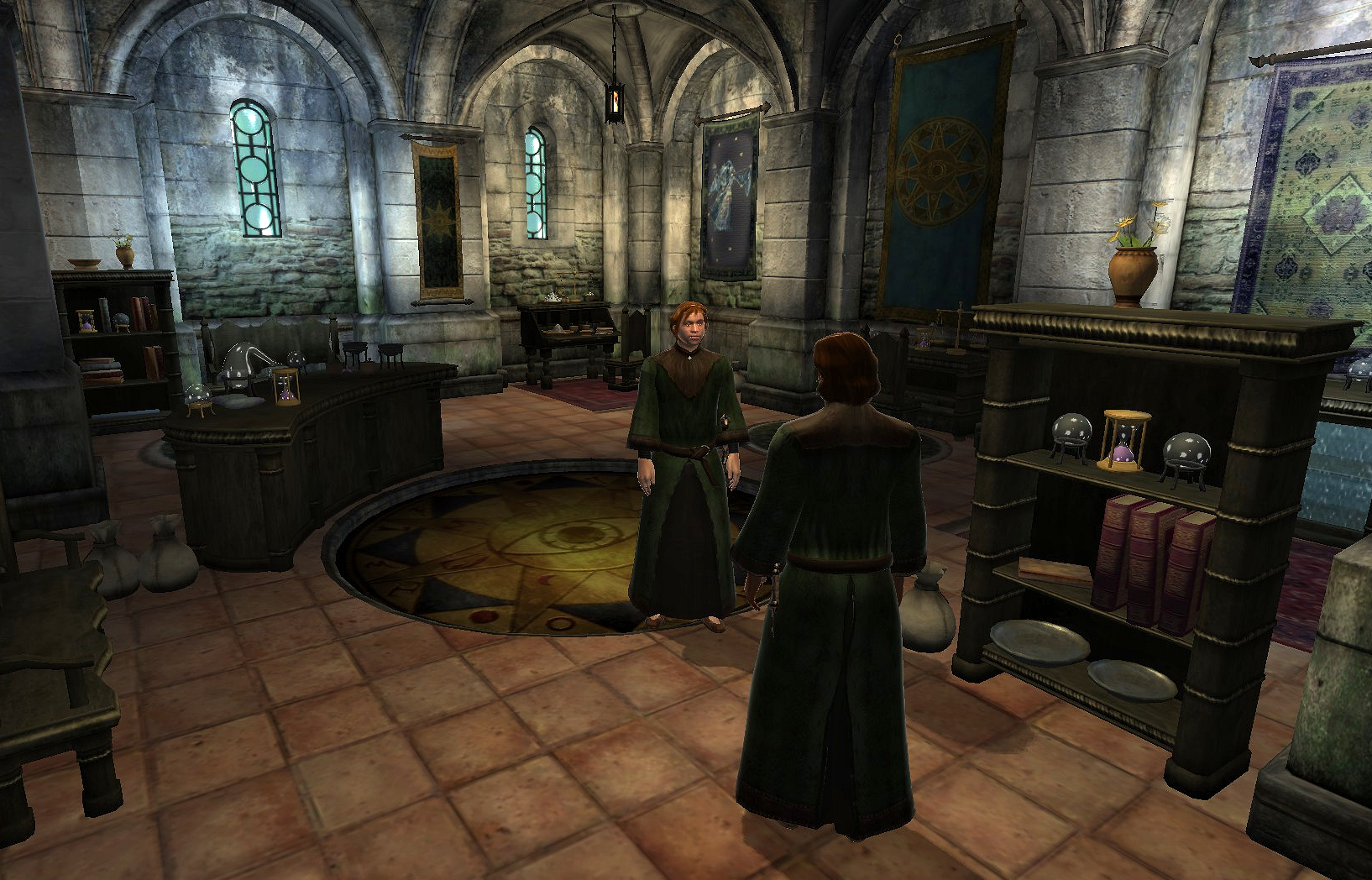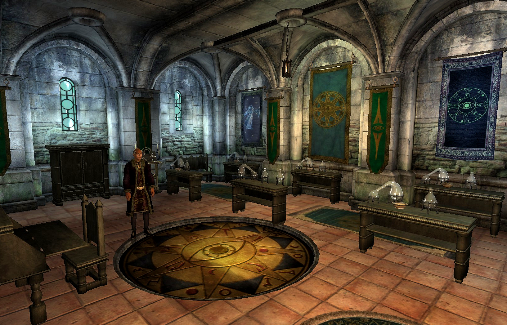 The Lustratorium (8) is the main alchemical center of the University. It includes a few alchemy books, and is run by Julienne Fanis, a noted alchemical researcher though she is often found in the Arch-Mage's Lobby.