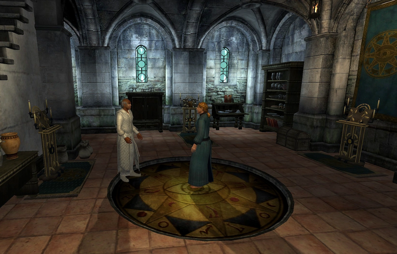 This building is also notable for its caretaker, Delmar, who assists all novice mages in obtaining their Mage's Staff. One can also find the Master trainer of illusion, Martina Floria here. This area is open only to Apprentice rank (or higher) members of the Mages Guild.
