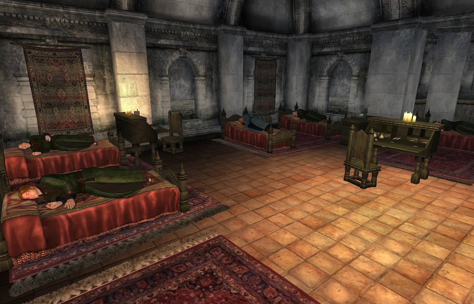 A ladder leads to the Imperial Watch Barracks, a small room lined with four beds and accompanying chests. There is no third floor or basement.