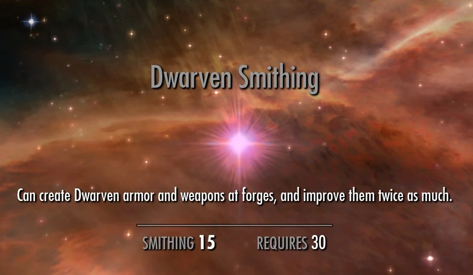 Dwarven Smithing is one of the perks associated with the Smithing skill in The Elder Scrolls V: Skyrim.