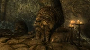 Folgunthur is a Nordic Tomb located southeast of Solitude and directly west of Windstad Manor. This ruin contains one of the fragments of the Gauldur amulet. The quest to obtain the fragments can be started here if it was not initiated during Under Saarthal. Near the entrance is a medium-sized camp, indicating someone who is found to be Daynas Valen, has been in the ruin before. The ruin is also the final resting place of Mikrul Gauldurson. Folgunthur is also home to a word wall containing one of the Frost Breath words of power, which can be found behind the metal bars to the right after defeating Mikrul Gauldurson.