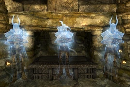 Further inside will be a large room with a table with three amulet pedestals. Placing the three amulet fragments on each of the pedestals will make the ghosts of each son appear, each of whom the Dragonborn will have to fight in turn.