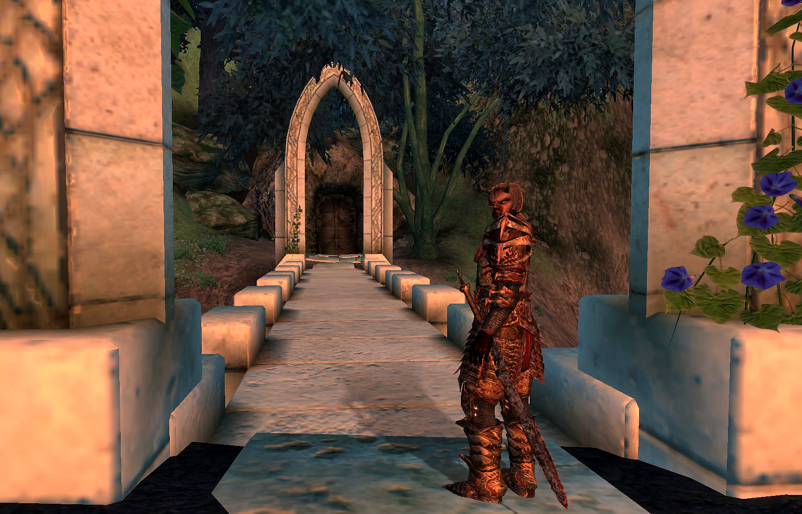 It is here in the Savage Garden one enters from Cloud Ruler Temple when the portal is activated by Martin. The landscape is beautiful and colorful with flowers and vegetation. Everywhere are Ayleid ruins and stone paths leading to more ruins. But there are also Daedroths, Storm Atronachs, Frost Atronachs, Clannfears and Spider Daedras present to harm everyone in sight.