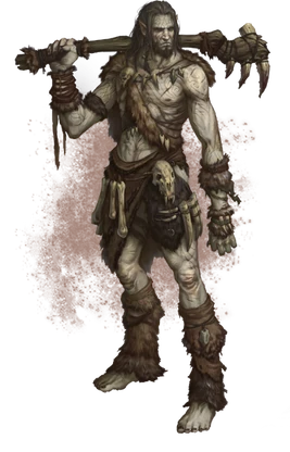 Giants are eleven to twelve feet in height, and are mostly humanoid in appearance; they have long, powerful limbs, thick skin, with large hands and feet, and decorative scars on their chest that are mainly tribal or religious symbols.[3] Giants' hair is braided with decorative beads and their faces are wrinkled. Their toes appear to have alchemical properties. Female giants are scarcely seen, but the reason behind this is unknown.