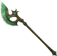 Despite their name, "glass" weapons are not made of actual glass, but of Refined Malachite, a strong, glass-like green stone which can be sharpened to a fine edge, and strengthened further with Moonstone. Glass weapons have a design similar to Elven Weapons, highly ornate with avian motifs.