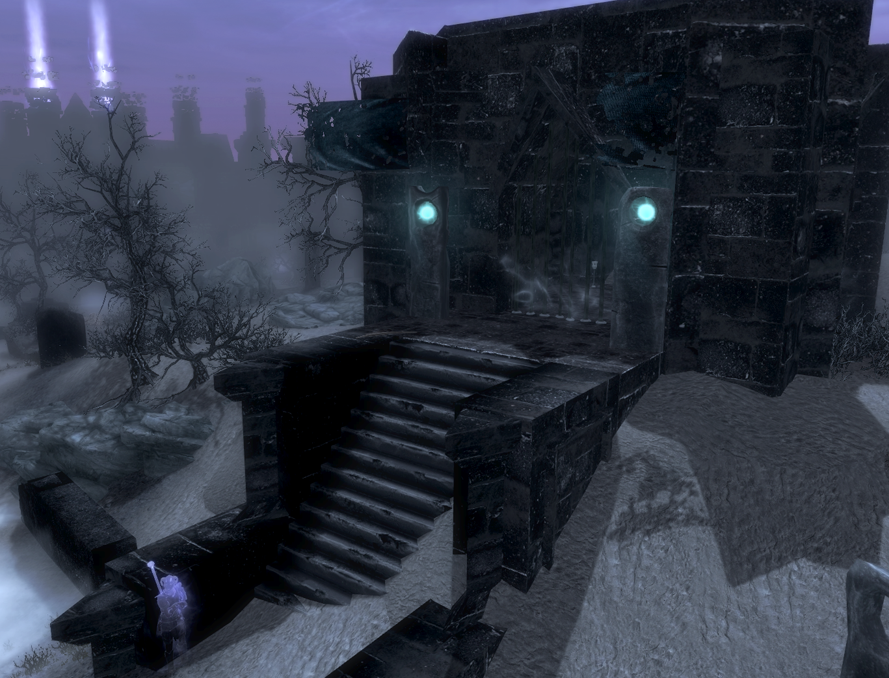 | Page 8 | Like Page 6, this one is near to the staircase you descended on entering the Soul Cairn, only this time it's in the first building on the right instead of the second. This one involves shooting an arrow (or bolt) (or spell) at both of the glowing orbs next to the doorway — doing this should lower the bars to let you in. Sticking to the same path but heading back to the stairway will take you towards Page 6. |