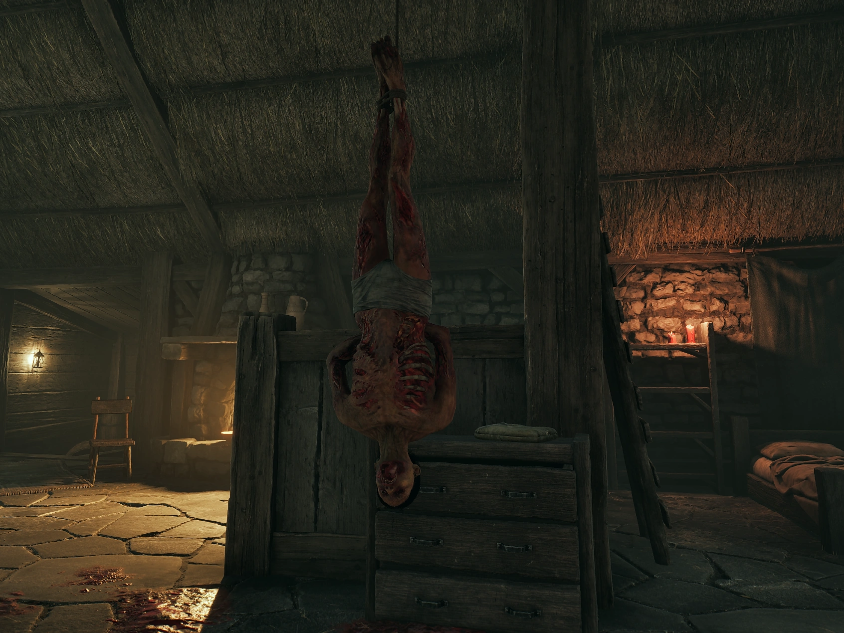 Unfortunately, the Black Hand believed it was Lachance himself who was the traitor, and had ordered his execution. Lachance made his way to Applewatch farm, where he was greeted by the Black Hand. He desperately pleaded his innocence, but the Hand would not listen as they set about killing and mutilating his corpse beyond recognition. At one point during the slaughter, Speaker Arquen was said to have feasted on Lachance's entrails. Lachance's naked, mutilated corpse was then strung from the ceiling of the farm house, as a reminder to all who would betray the Dark Brotherhood.[2]