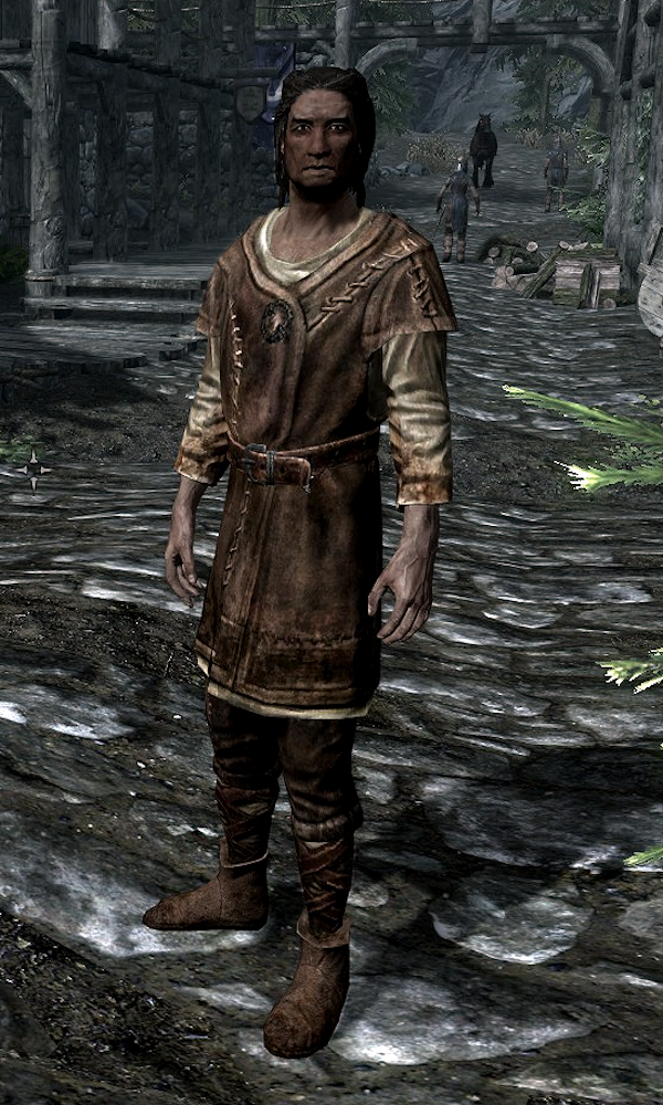 Mathies is a Nord farmer who lives in Falkreath. He and his wife Indara Caerellia own and tend Corpselight Farm. The couple once had a daughter, Lavinia, but she was brutally murdered by Sinding near the town's lumbermill.
