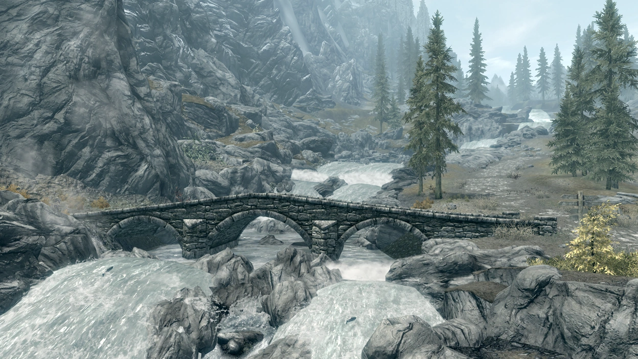 Lake Ilinalta and White River are major bodies of water in the Pine Forest. Both are abundant with underwater life, such as Fish and Mudcrabs. The forest is surrounded by two mountain ranges, the Jerall Mountains to the south and the Throat of the World to the east.