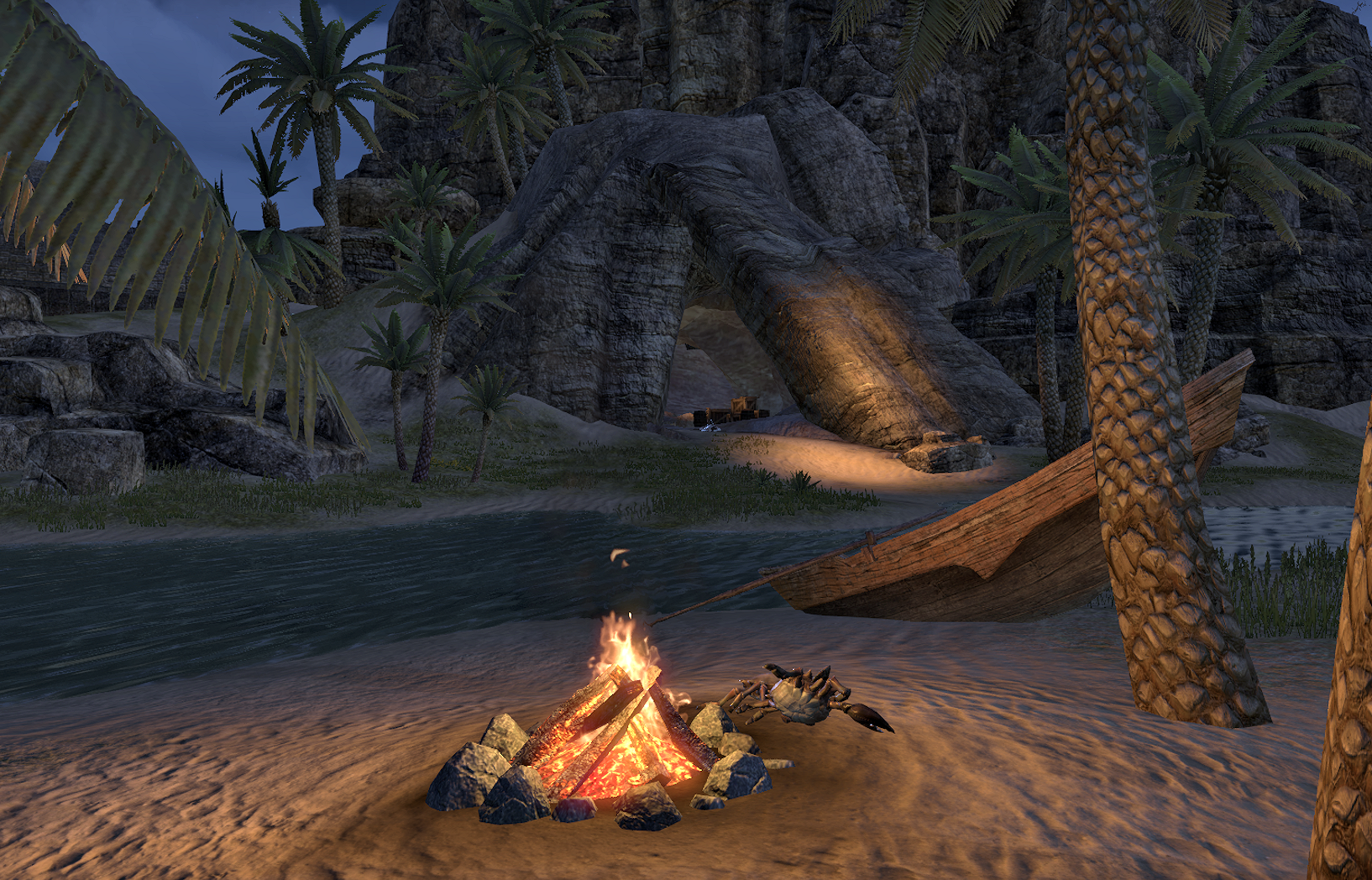 Sandy Grotto is a cave in the northern part of the island Stros M'Kai, Hammerfell in The Elder Scrolls Online. It is located not far from the Sandy Grotto Wayshrine. Inside are a stack of plunder and a dead man.