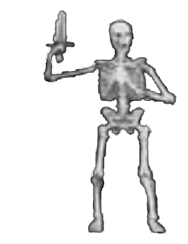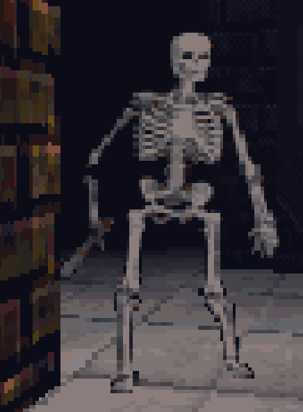 Skeletons are human bones reanimated through magic. Even without flesh, these creatures can fight the same way they did when alive. They are often encountered guarding dungeons and crypts, however they also can be found in the wilderness and cities during the night.