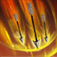 "Launch a multitude of arrows into the sky to rain down, dealing ____ Physical Damage to enemies in the target area every 0.5 seconds for 8 seconds."